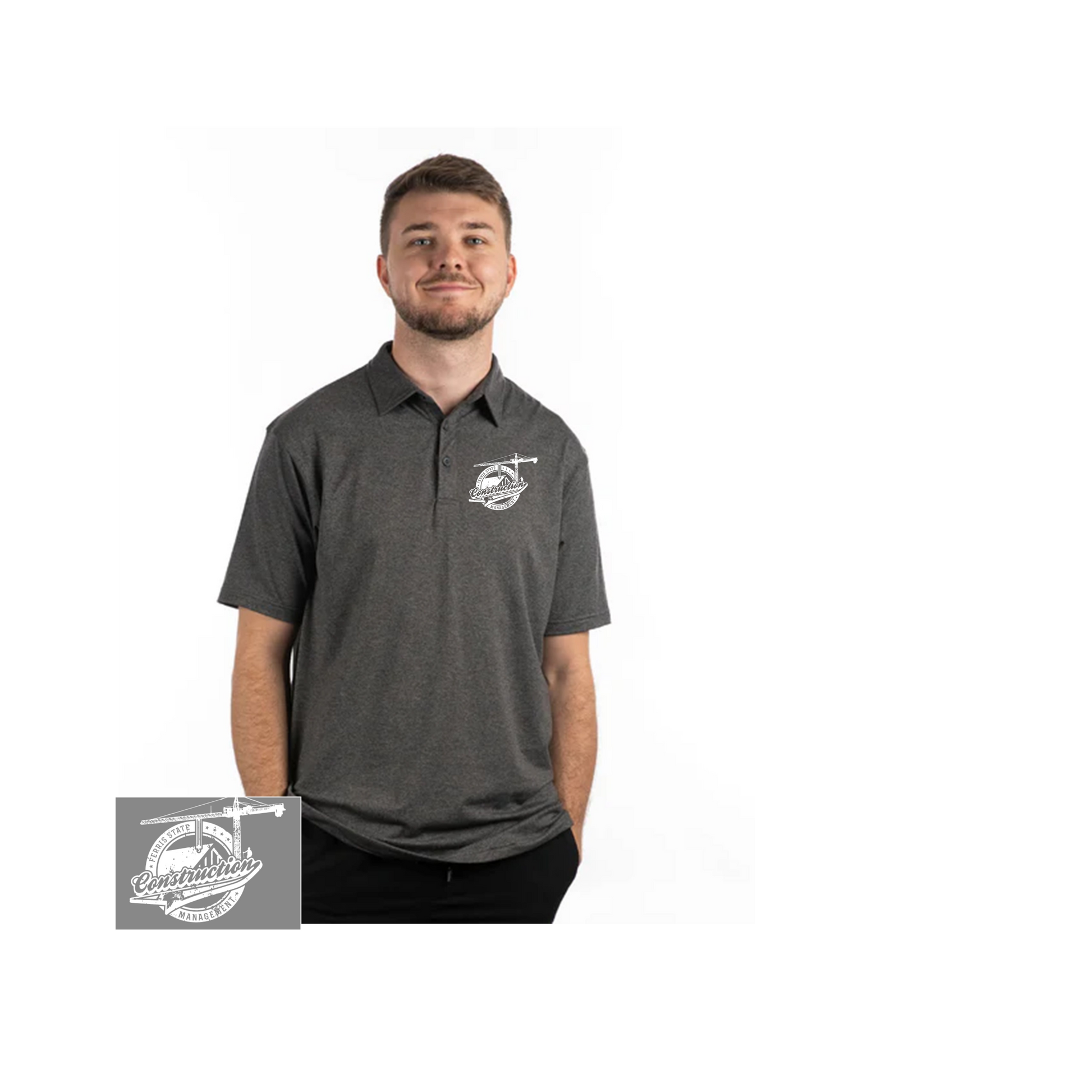 Polo shirt. Available in grey or black with your choice of 3 different Direct to Film Logo options: Crane, Bulldog 2.0, or Retro